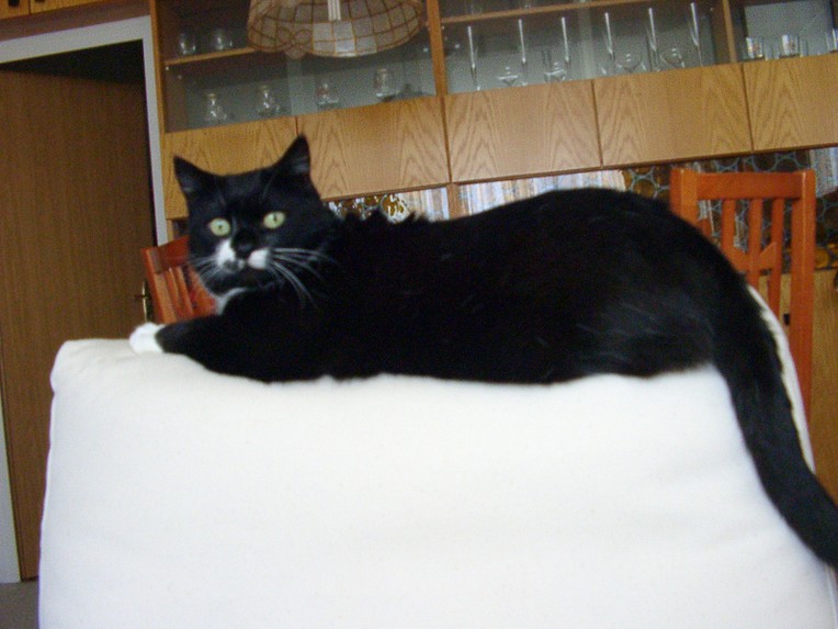 Meist flüchtete sie dann zu ihrem "Menschenpapa", der sie vor den Katern beschützen sollte.